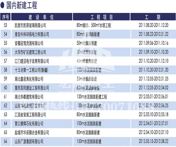 宏順建設工程有限公司是國家批準成立的專業高空作業企業:承攬過(國內.國外)煙囪新建、煙囪防腐、磚煙囪新建、煙囪改造、煙囪維修、煙囪脫硫防腐、煙囪拆除加高、煙囪滑膜等高空作業工程。具有“不搭腳手架 、 不需要停產”施工特點。